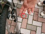 車輪を固定しているレバー(クイックレバーとか、クイックレリースレバーなどと呼ばれています。)がしっかり締まっているか?