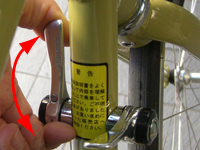 | ハンドル部ではなく車体についているレバー。シンプルですが、片手を離す必要があります。これも右と左では働きが逆になります。 |